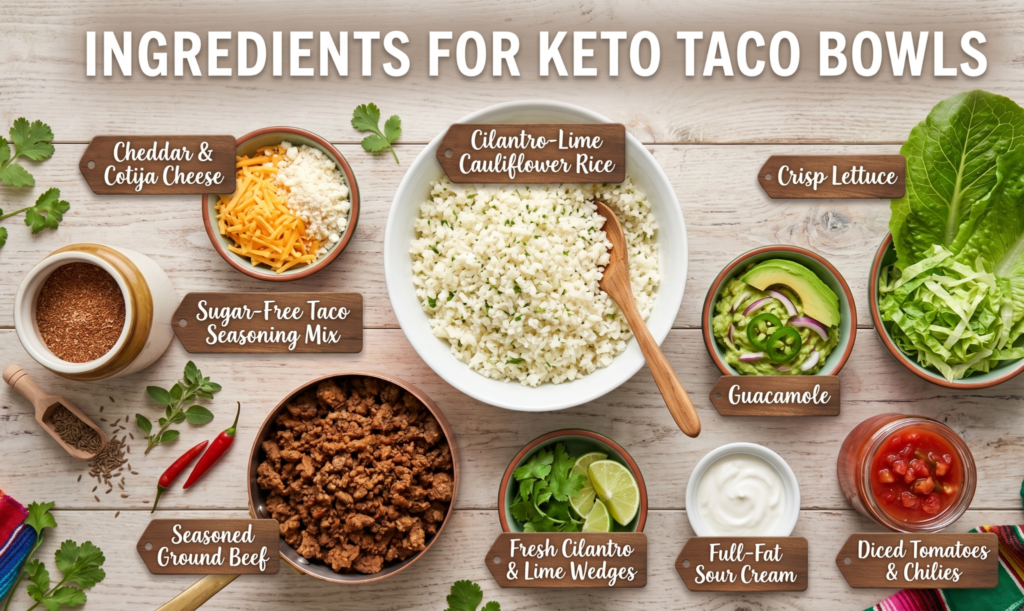 Ingredients for Keto Taco Bowls